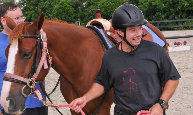 We welcome veterans from the recreation center at the Miami Veterans Administration Medical Center as well as private individuals. The veterans program is a combination of the therapeutic horsemanship and the horseback riding programs. Whether a veteran wants to learn to ride, groom, or become a volunteer, there is never a charge for participation. This program is fully funded by donations from private individuals and local organizations.