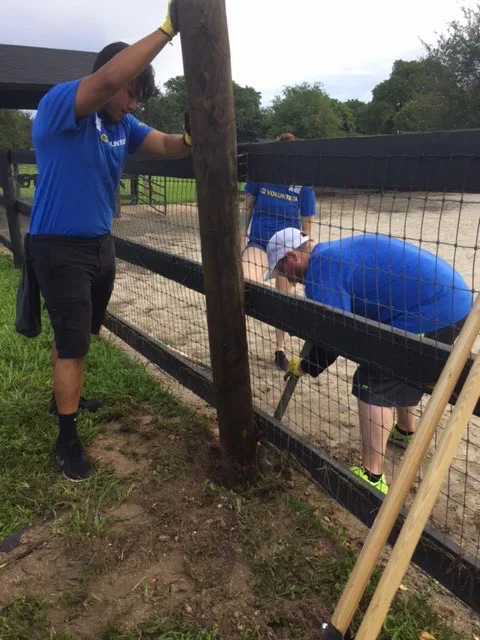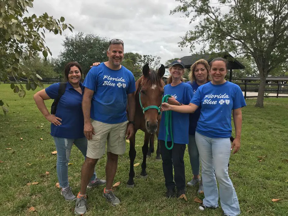 Corporate Responsibility, Give Back Days, Days of Service, whatever the name, Whispering Manes has been the beneficiary of incredible volunteers from Florida Blue and Best Buy. People from both corporations have come and participated in large projects to help maintain the property including painting offices, pruning trees and hedges, and replacing fence posts. We welcome groups who want to do a Day of Service. Let us know through the Contact Us page if you have a group that is interested in volunteering at Whispering Manes.